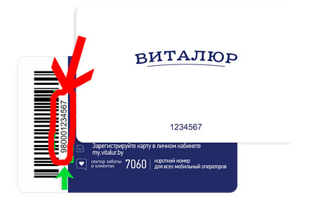 Номер карты находится под штрих-кодом, начинается с 980000. Если у Вас карта статуса VIP, то вводить нужно все цифры с лицевой стороны карты. При регистрации карты Моцная карта вводится 13 цифр под штрихкодом на обороте карты.