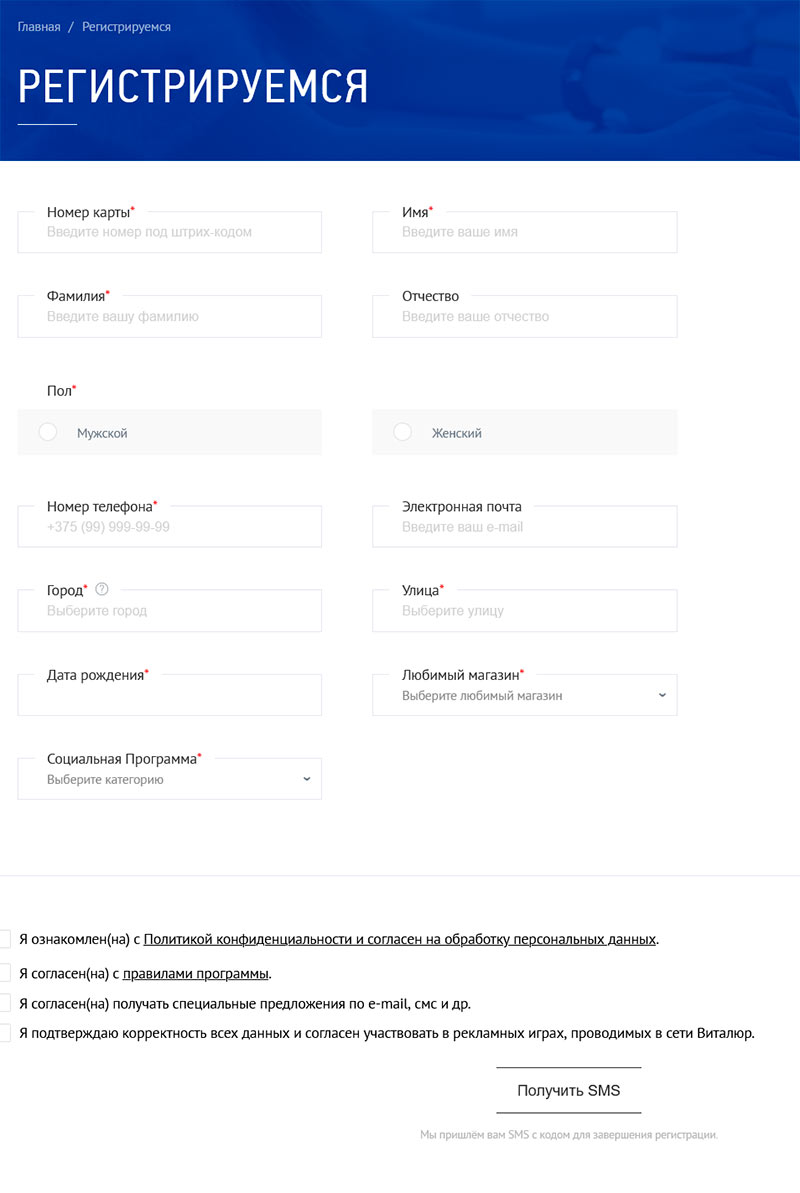 Регистрация карты Виталюр на сайте my.vitalur.by