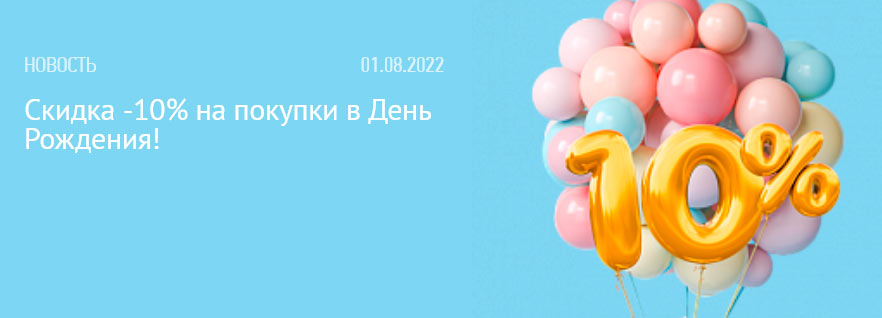 - 10% скидка именинникам (действует 3 дня до даты и 3 дня после)